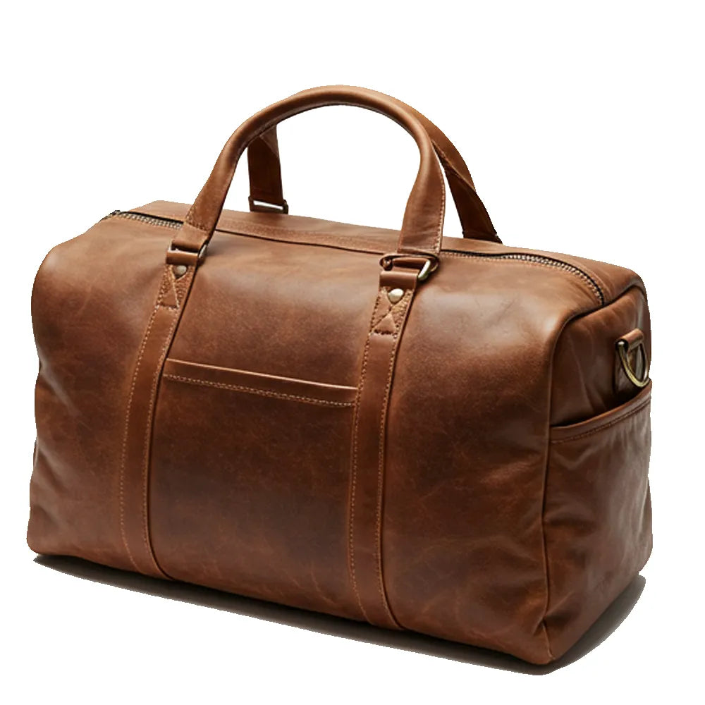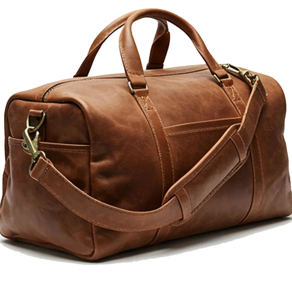 Genuine Leather Weekend Travel Bag with Shoulder Strap
