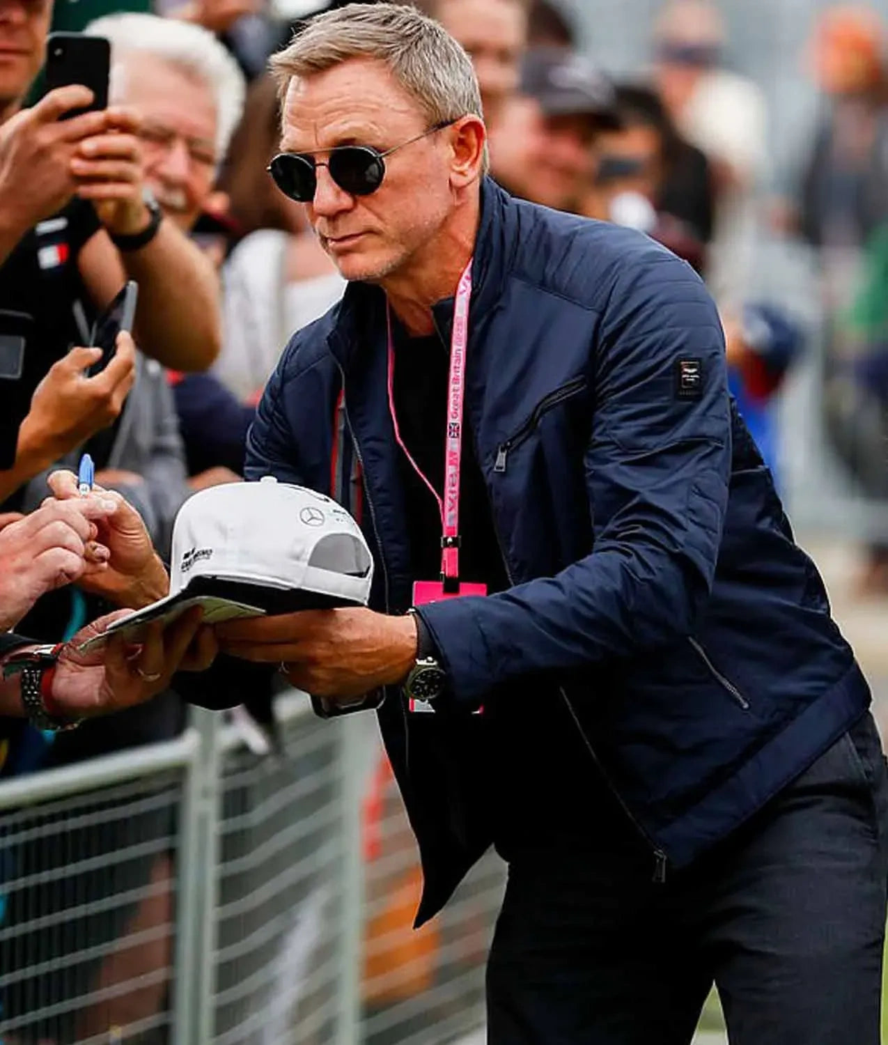 This blue cotton jacket from No Time To Die (2021) is perfect for lovers who love classic, sharp fashion like Daniel Craig's James Bond.