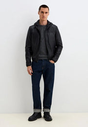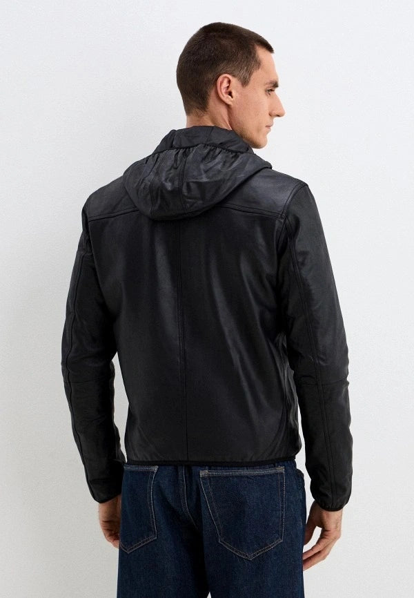 · Men’s AMJ-6 Black Leather Hooded Jacket