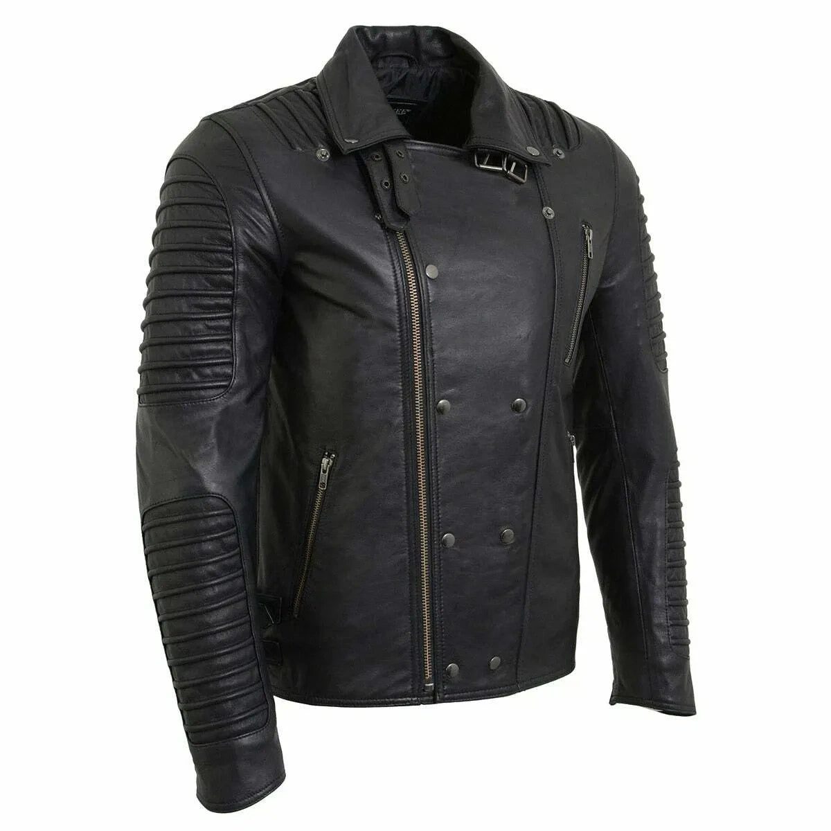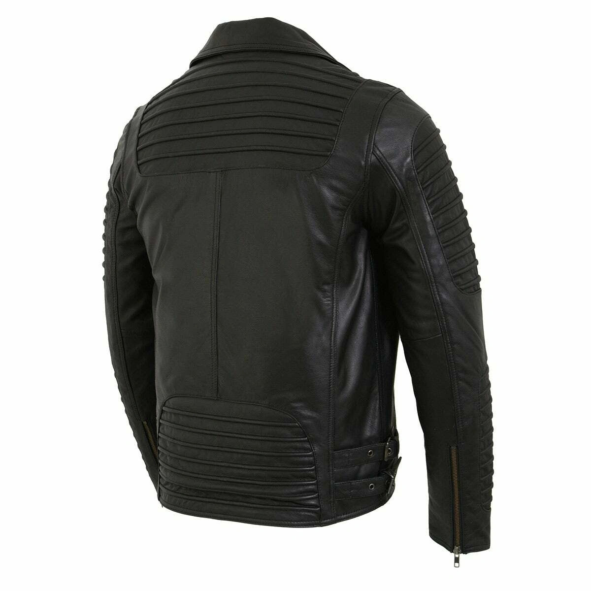 Men’s Black Leather Motorcycle Jacket with Quilted Sleeves