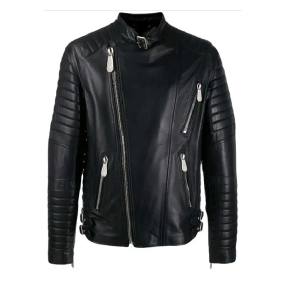 Crafted from premium faux leather and real leather, this jacket offers durability and strength without compromising comfort. The sleek black color enhances the jacket’s appeal, making it a versatile piece that pairs effortlessly with both casual and semi-formal outfits. The padded sleeves and asymmetrical zipper closure give the jacket a bold, edgy look, while the belted collar adds a touch of sophistication.