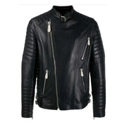 This Black Padded Sleeves Biker Leather Jacket is designed not just for style, but also for protection. The padded sleeves offer extra comfort and support, while the high-quality leather ensures that this jacket will stand the test of time. The asymmetrical zipper and zipper cuffs add a modern twist to a classic design, making it a must-have for any biker or fashion enthusiast.