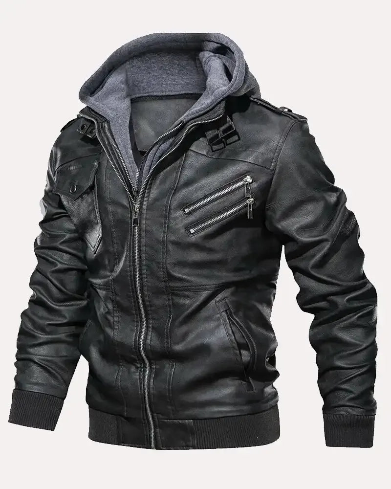 Urban Fusion – Men’s Casual Hooded Leather Jacket