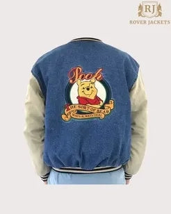 With classic varsity jacket elements like striped ribbed cuffs, collar, and hem, the Winnie The Pooh Denim Varsity Jacket combines timeless sporty style with a fun, whimsical twist.